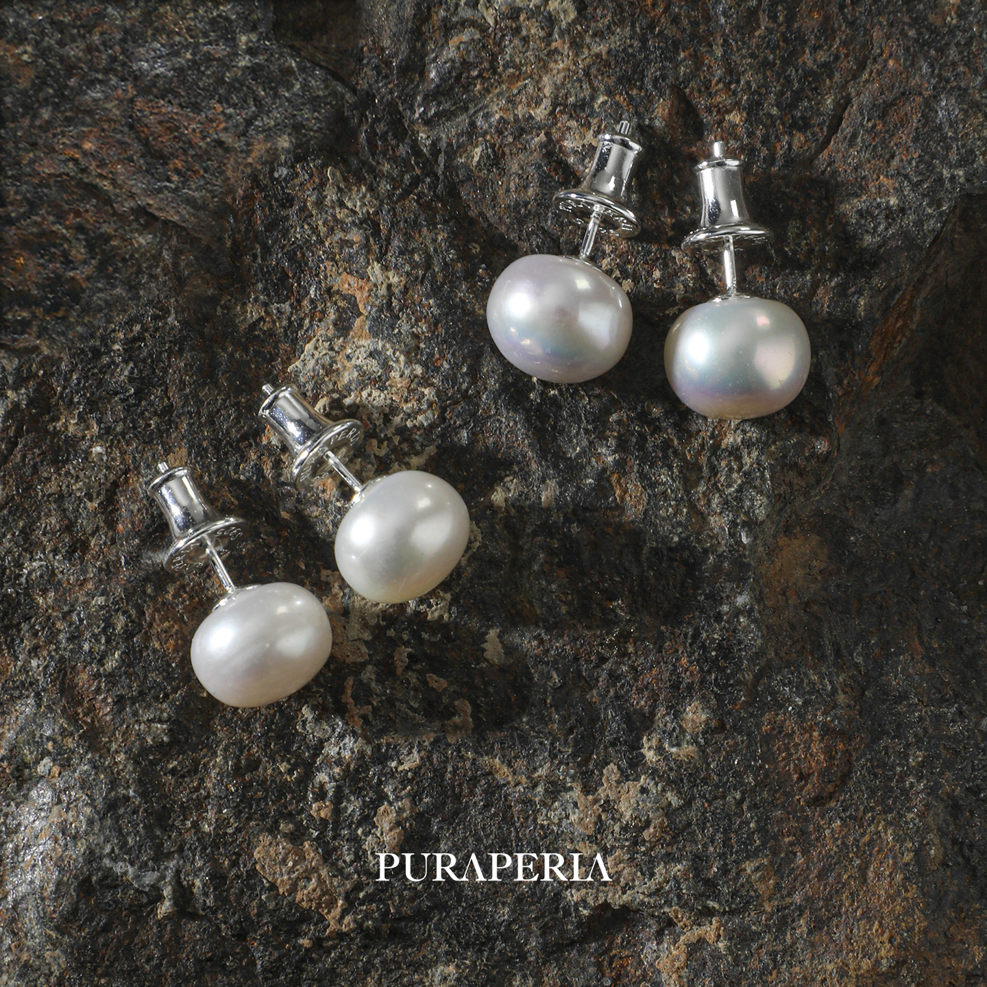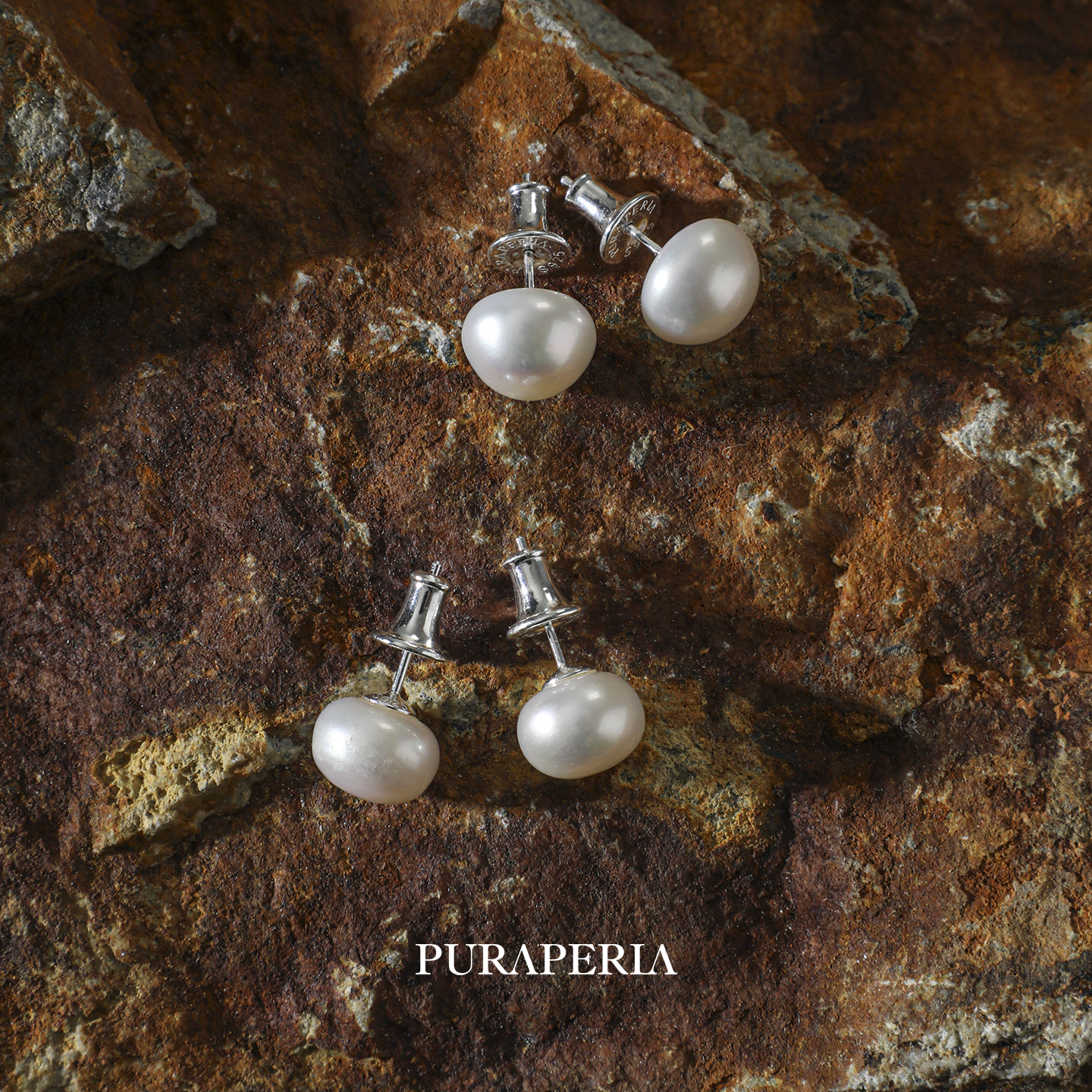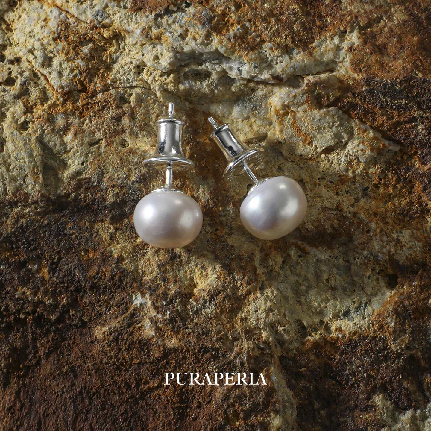 A pair of “mochi” shaped pearls tarnish-resistant 925 Sterling Silver