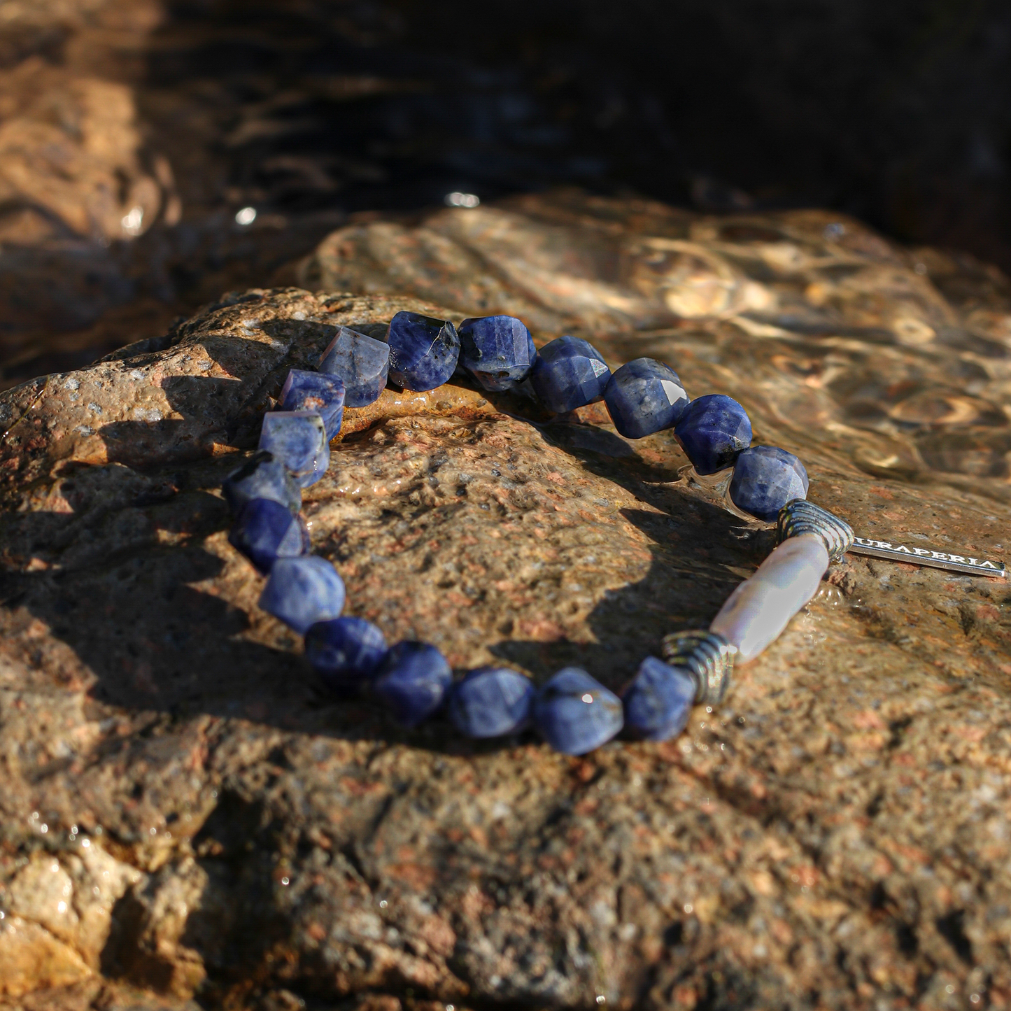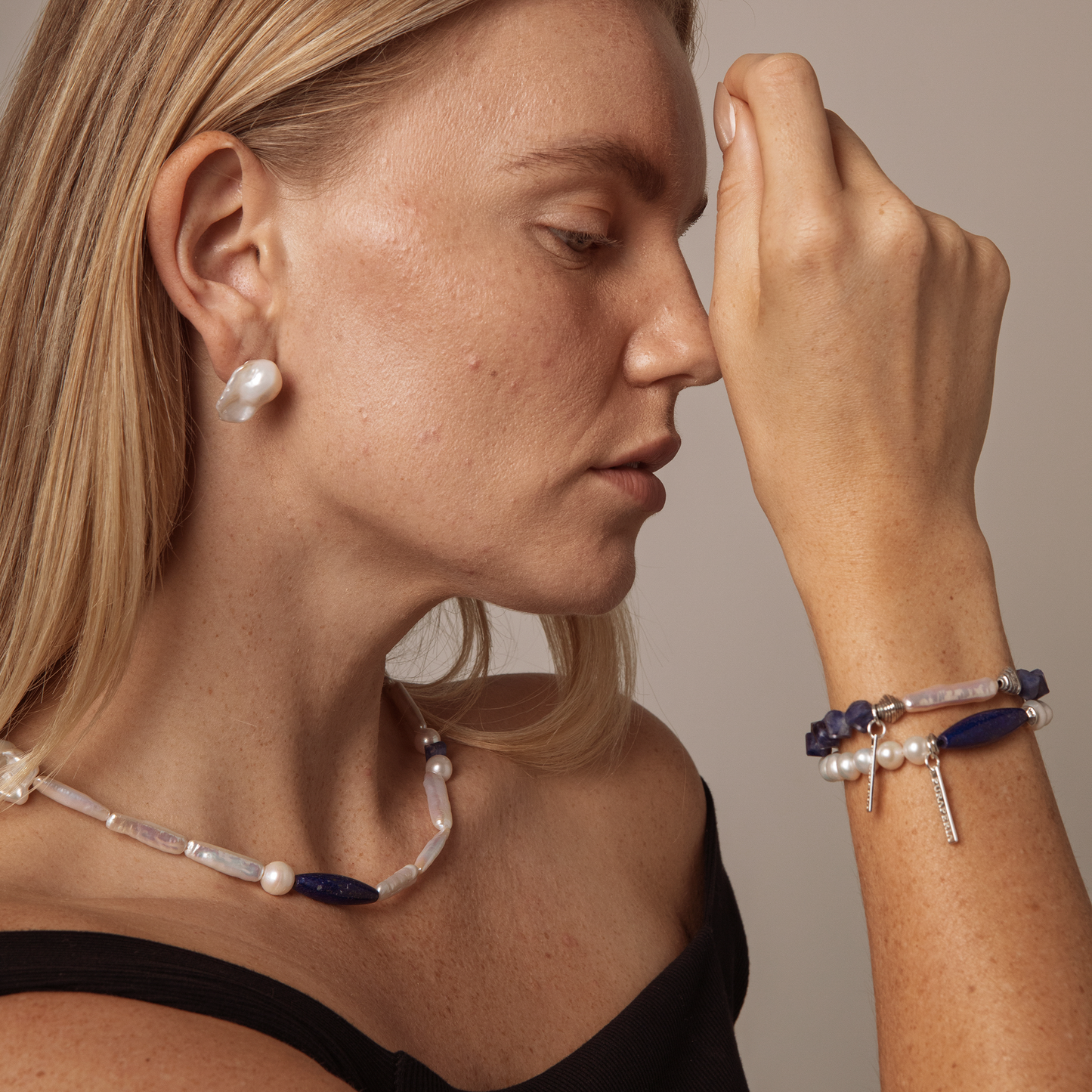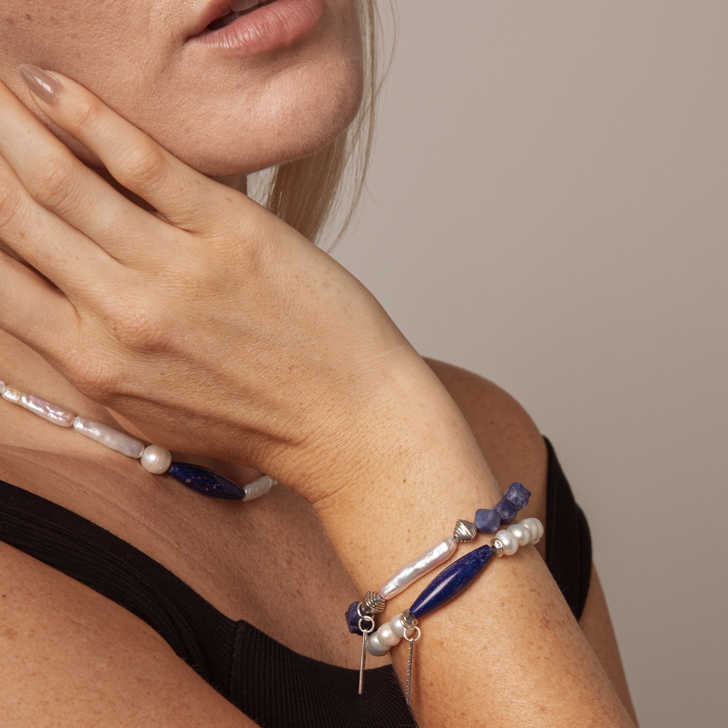 Oceanic Starlight Bracelet the Blue-Vein Stone and Baroque Pearls
