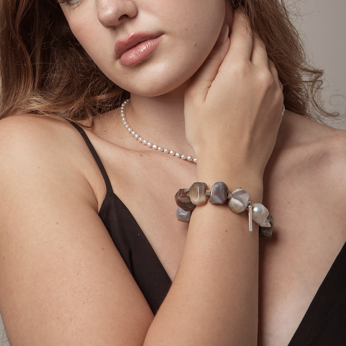 Add Eclipse Poetry Bracelet | Large Baroque Pearl \ Free-form Persian Agate \ Sterling Silver| Statement Jewelry to the cart