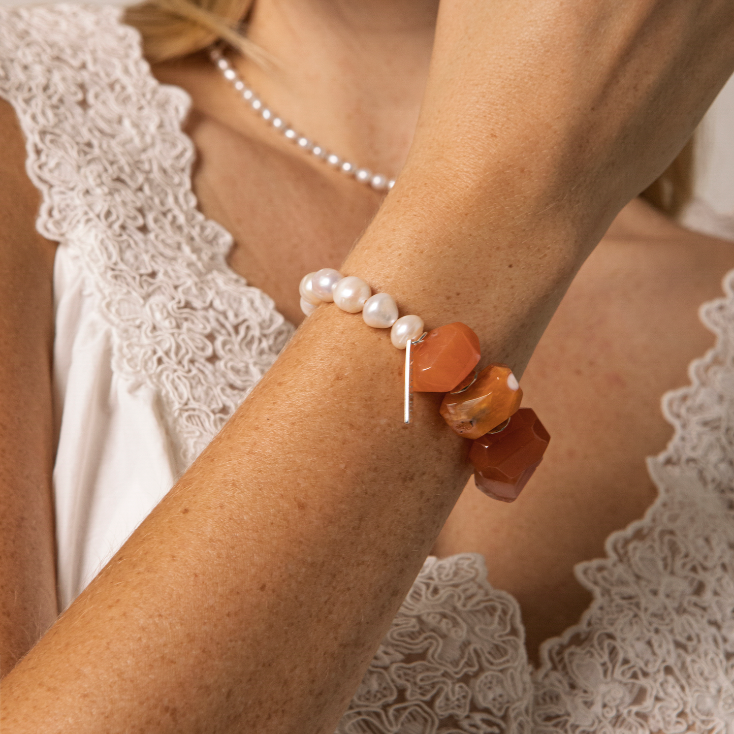 Add The Nomad Spirit Red Persian Agate stone and textured pearls Bracelet to the cart