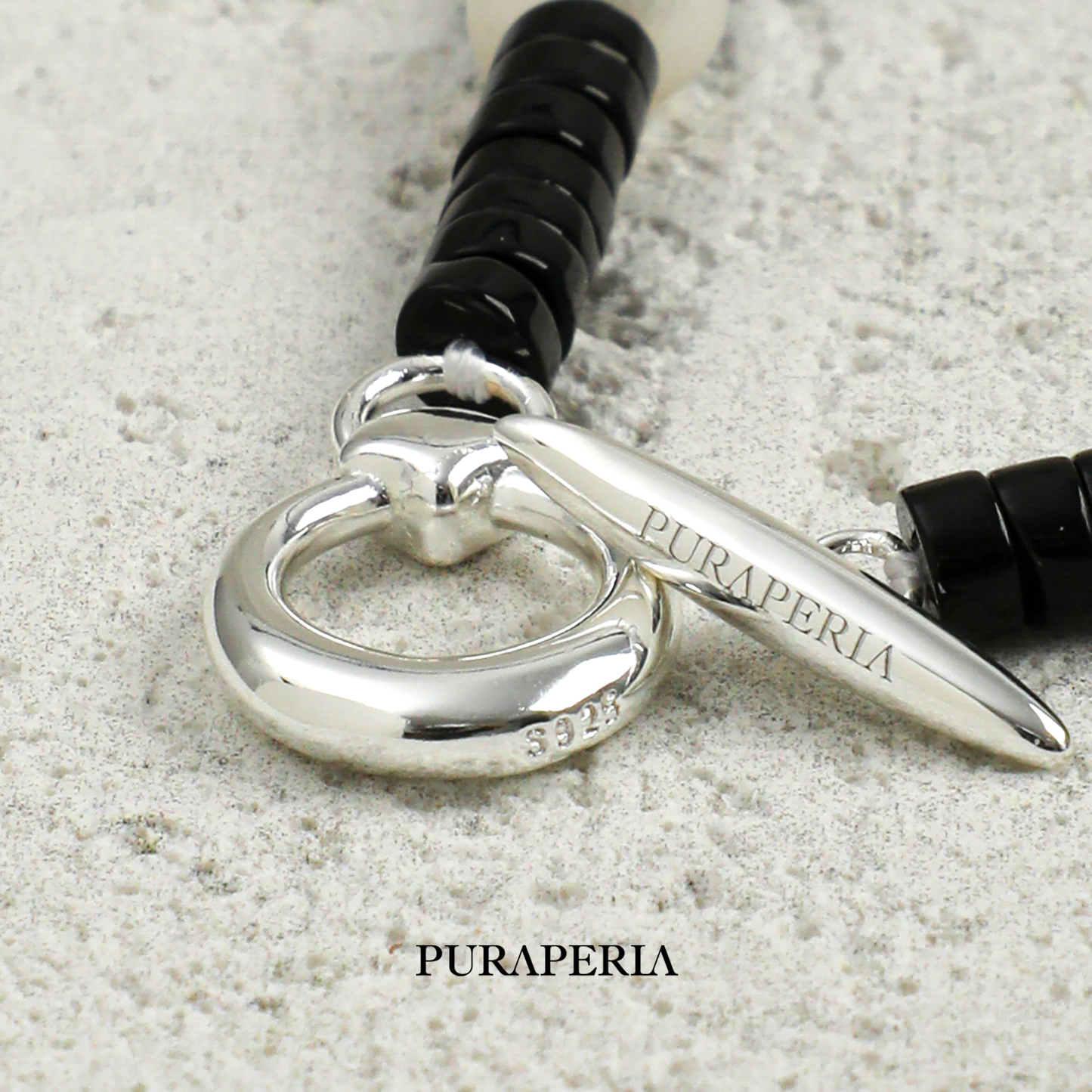 The Closure: A sturdy, polished sterling silver OT clasp engraved with our logo.