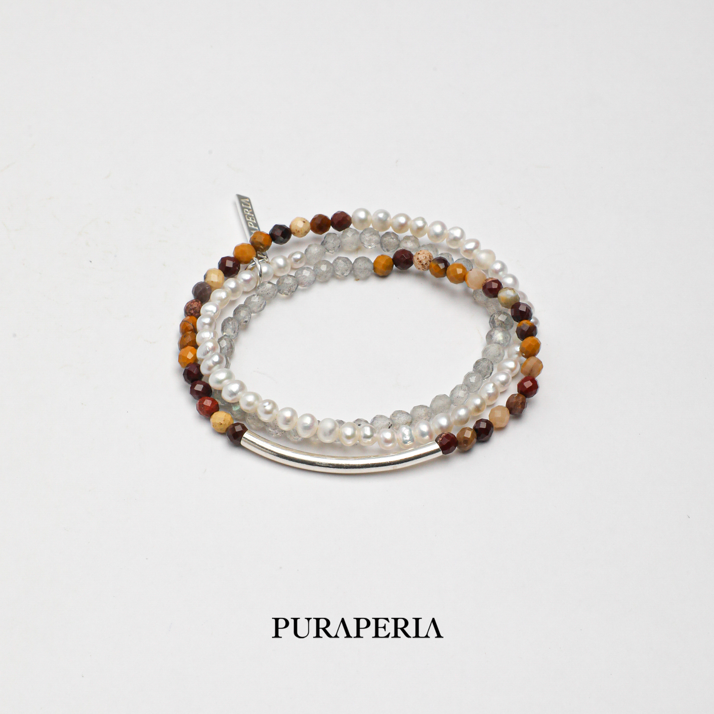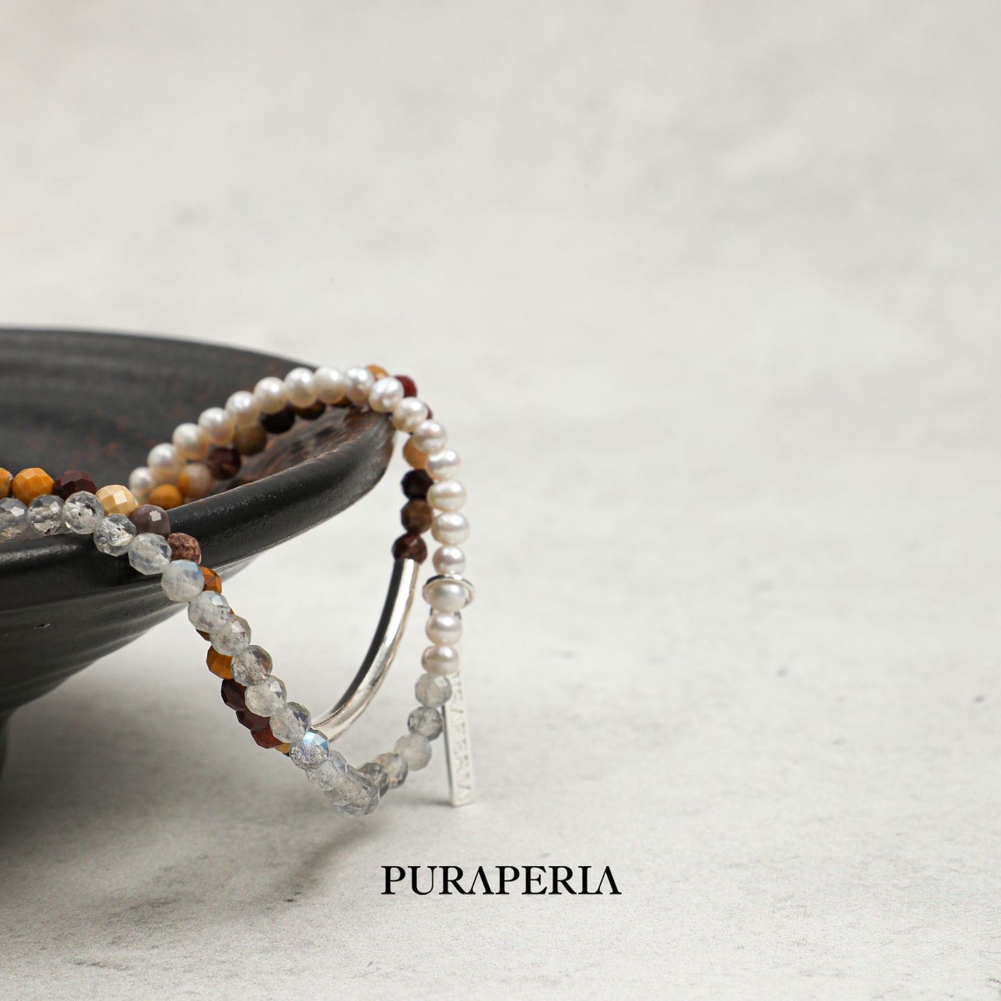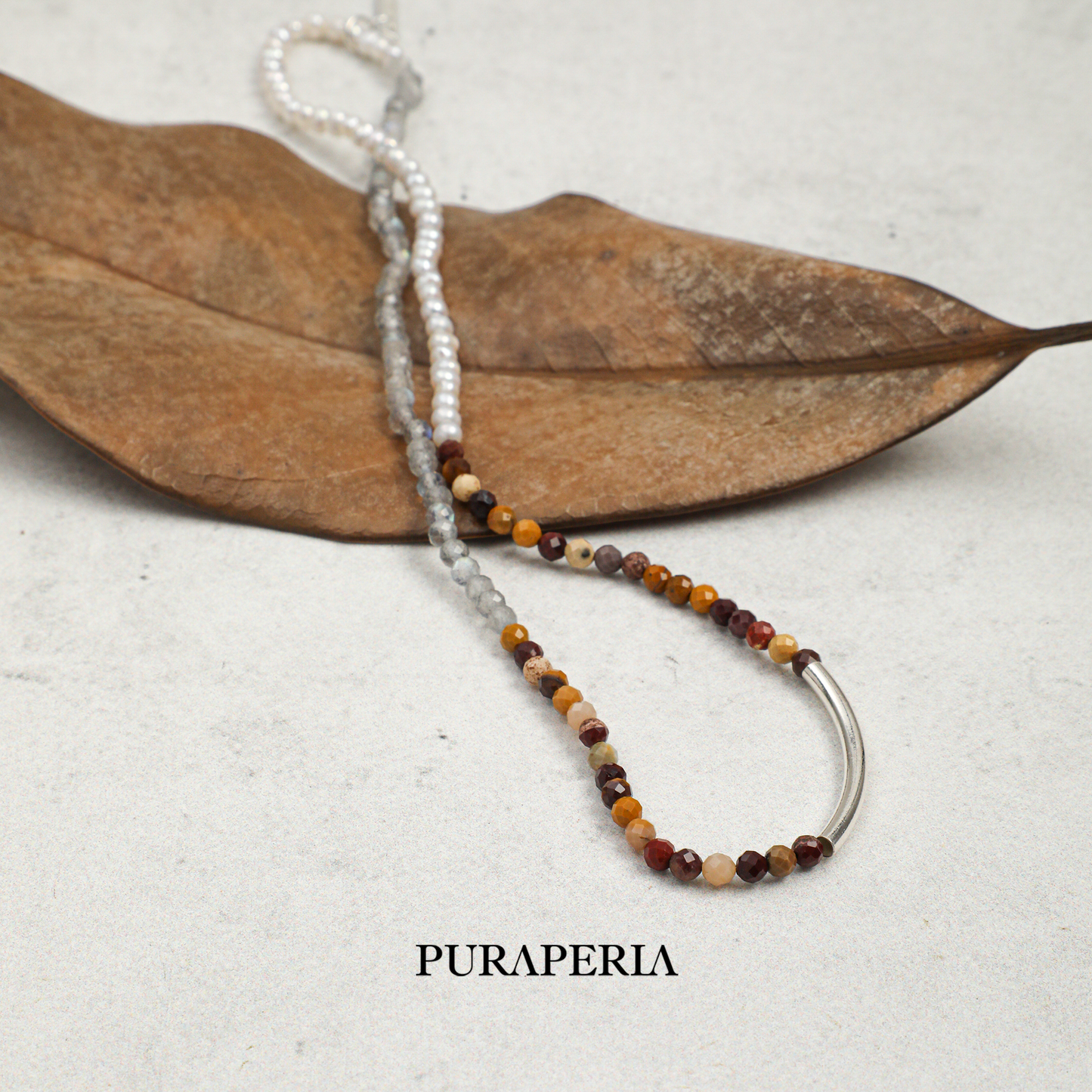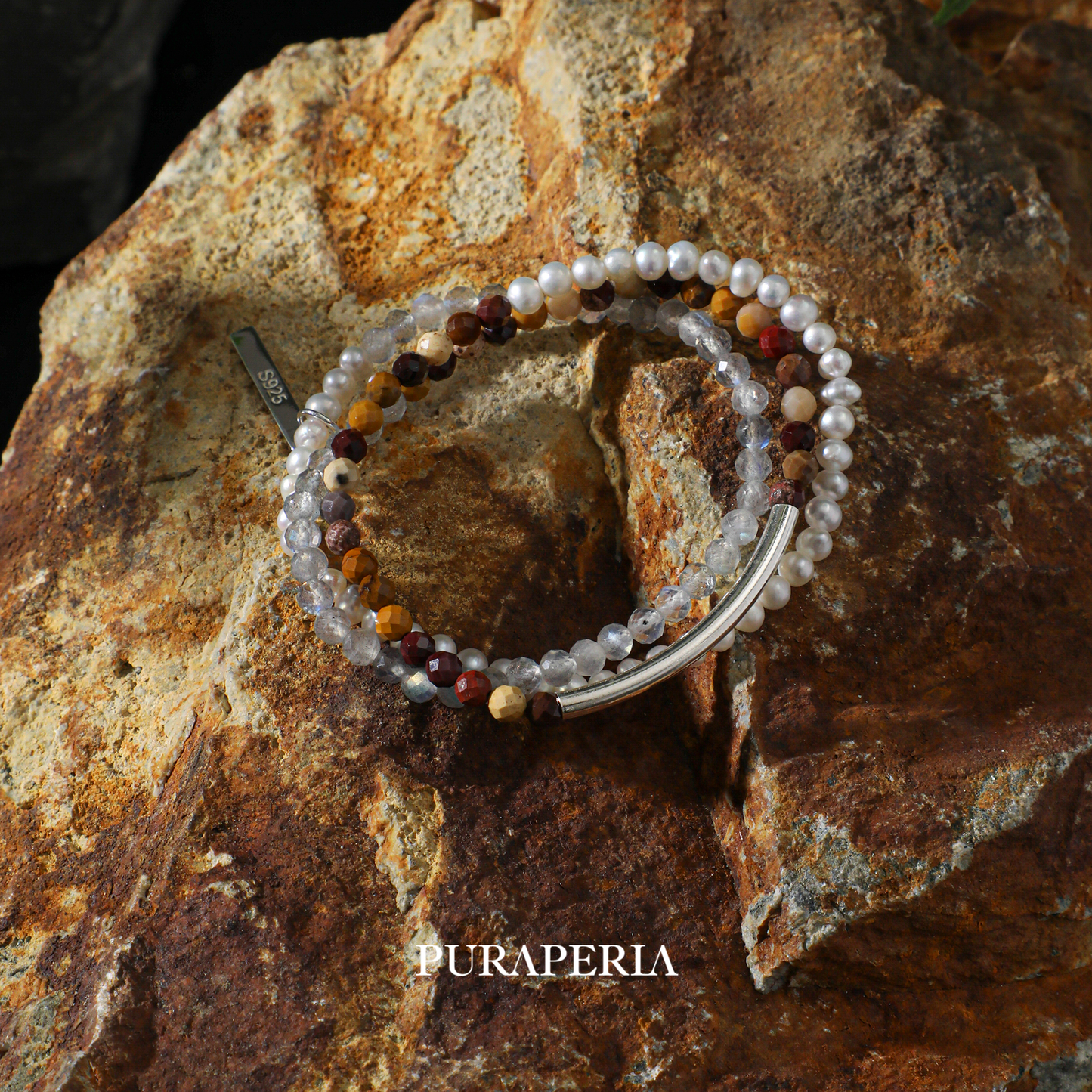Inspired by the three core chapters we all write in the story of our lives: Love & Connection (Pearl Beads) - symbolizing pure beginnings and cherished relationships; Growth & Radiance (Goldstone) - representing the wisdom and energy forged through life's experiences; and Intuition & Serenity (Gray Moonstone) - embodying the deep peace found in listening to your inner self. The sterling silver tube acts as an elegant "chapter mark," gracefully dividing each meaningful segment.