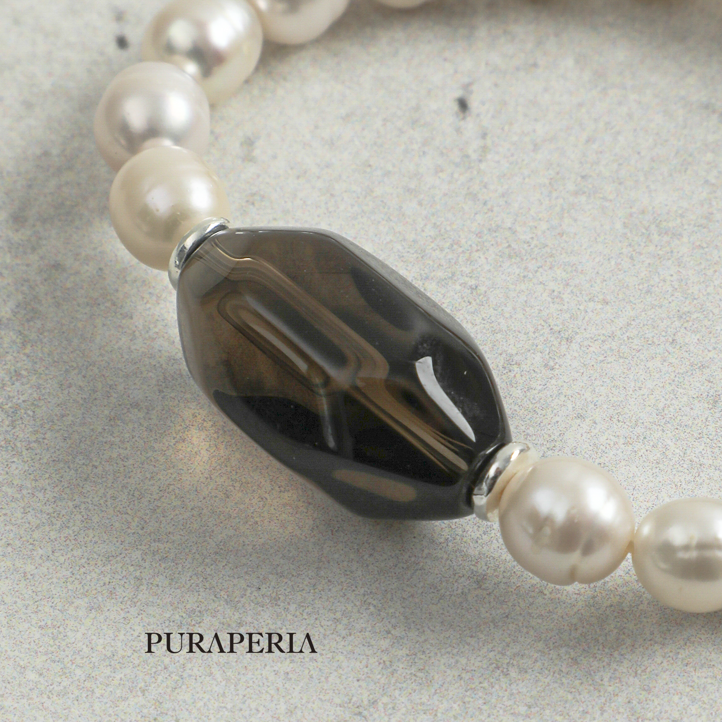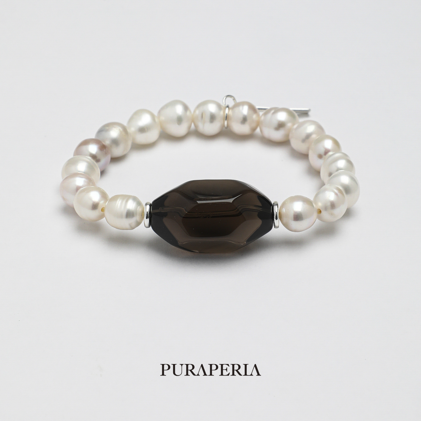 Nomadic Stars Bracelet Natural Smoky Quartz and Textured Pearls Energy Jewelry
