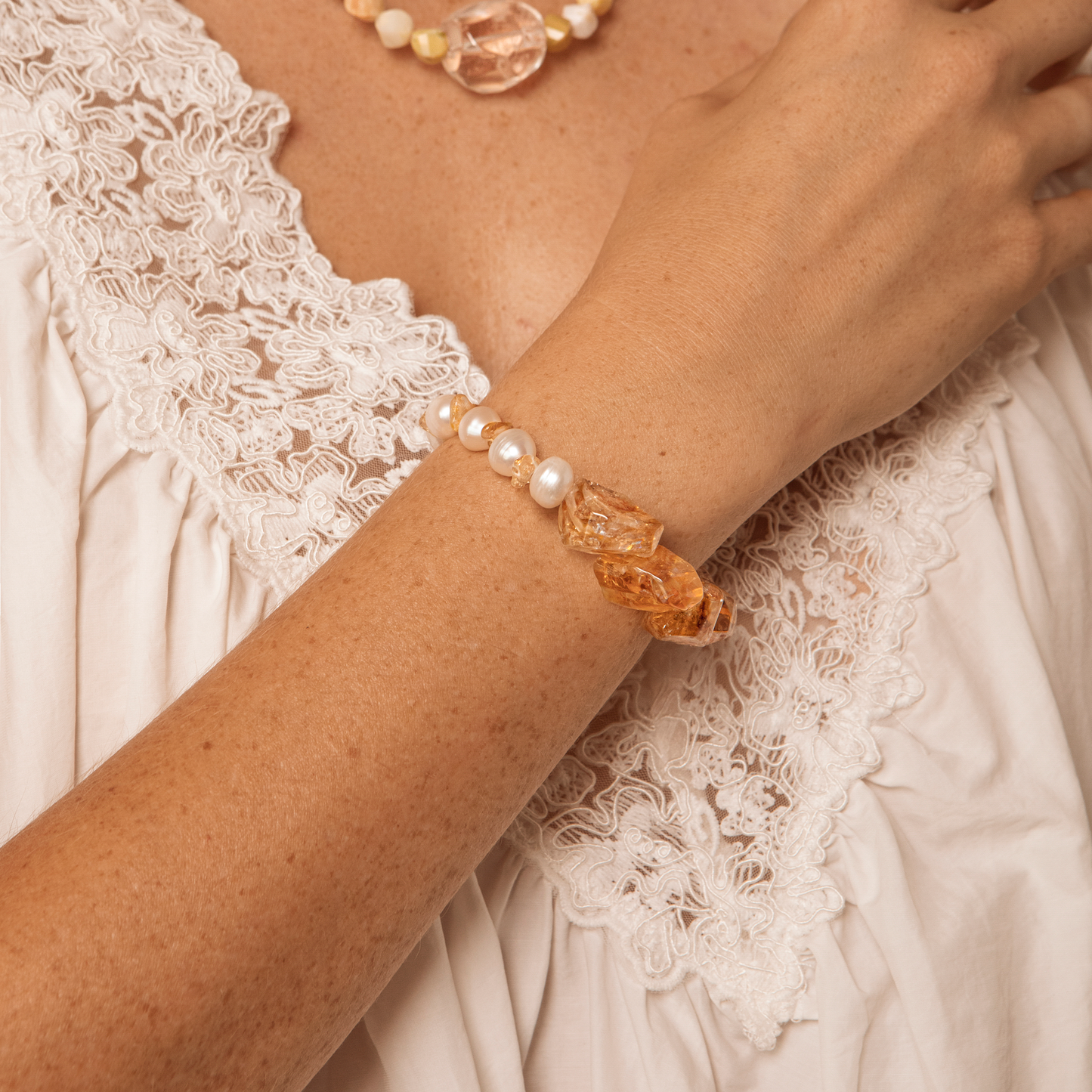 The Abundance Flow Bracelet - Wealth & Purity Citrine Pearl Elastic Bracelet